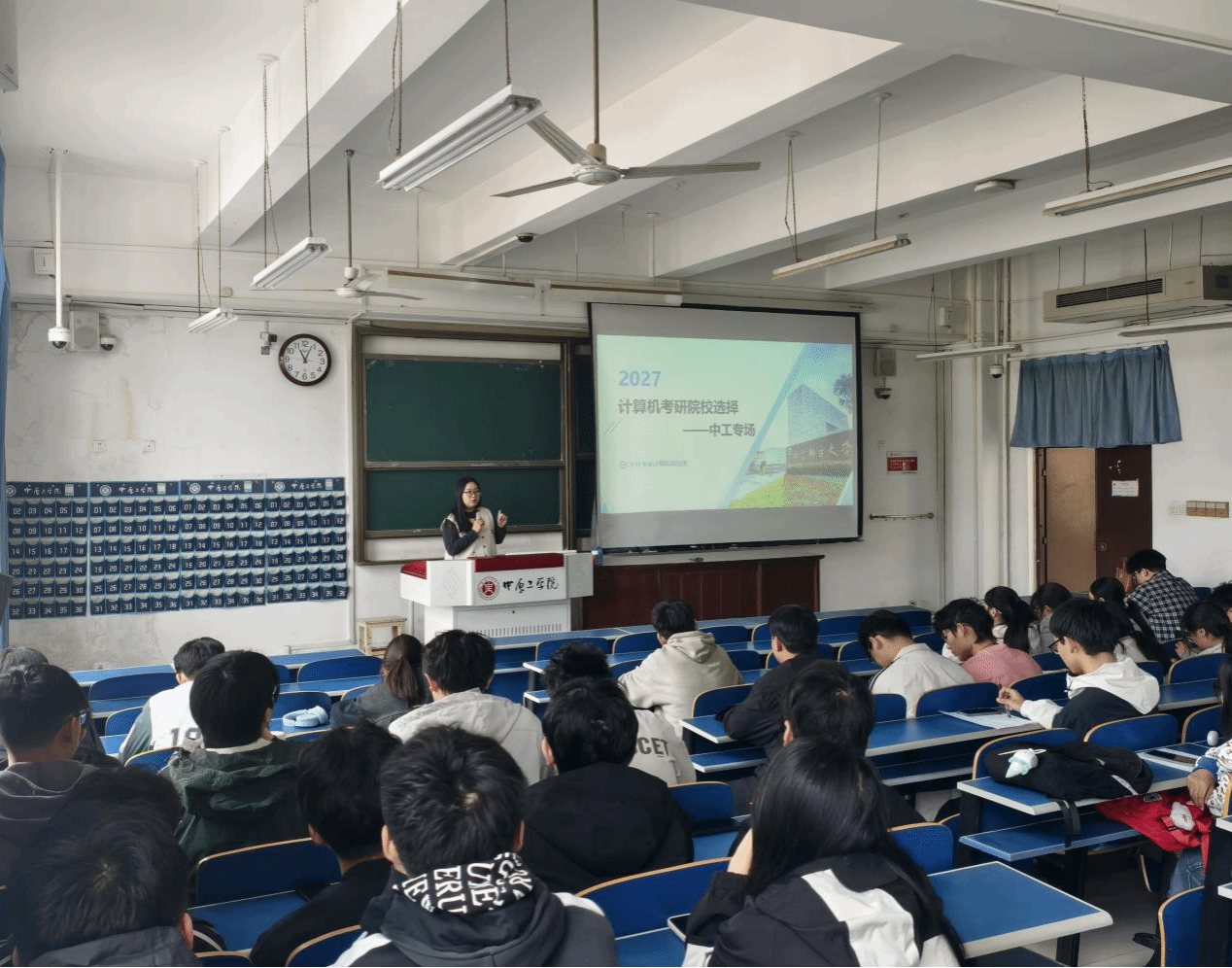 专家指路,把脉定向。随后,天任考研计算机项目负责人朱红梅老师带来专题讲座。她立足当前考研形势,深入分析了最新考研政策、招生趋势及报录比情况,帮助同学们清晰把握考研整体格局。朱老师系统梳理了从前期准备、基础复习、强化提升、冲刺模考到复试面试的全流程,详细讲解各环节的注意事项与备考策略。她还结合典型案例,对复习规划误区、答题技巧、复试礼仪、调剂流程等内容进行深度剖析,提出针对性解决方案,为同学们指明了一条科学、清晰的备考路径,助力大家规避陷阱,全面提升竞争力。