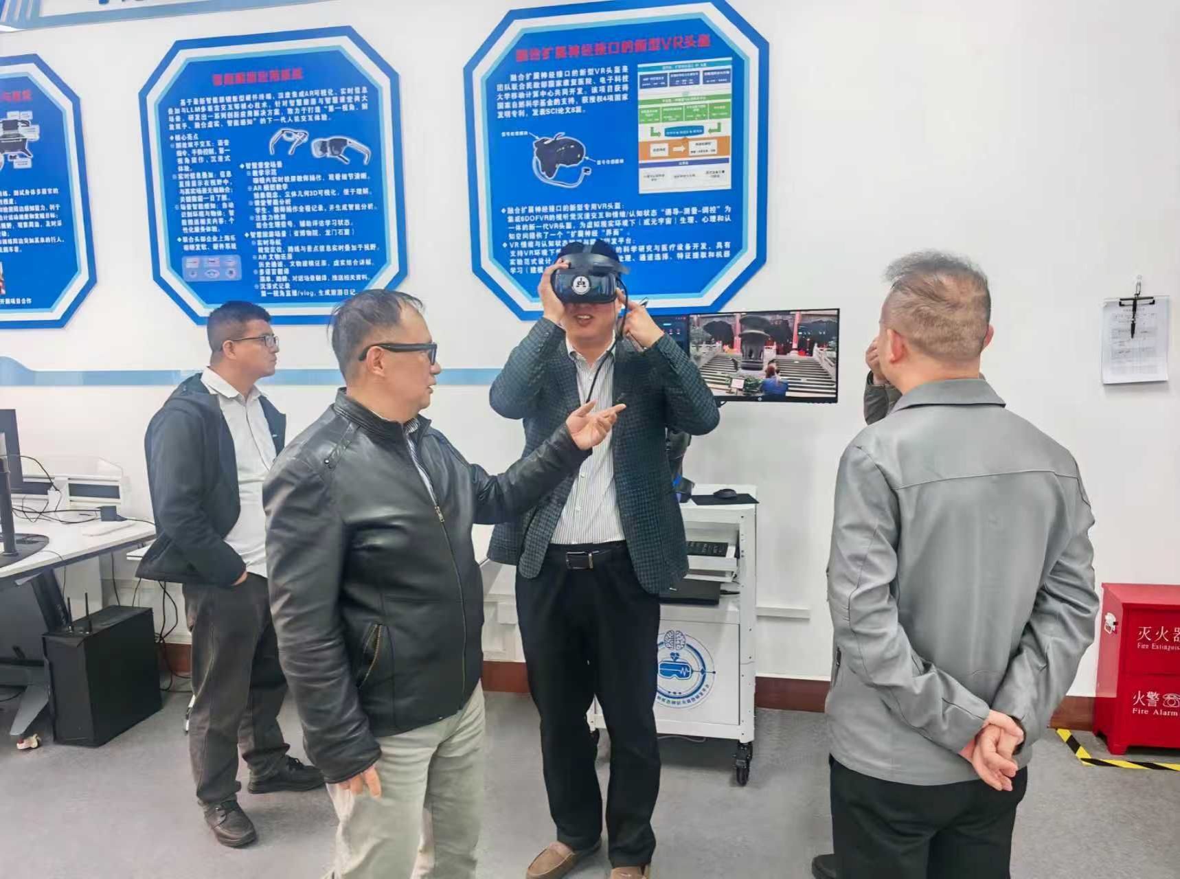 会后,李高强一行参观了williamhill威廉希尔智能穿戴与人因工程实验室,实地了解实验室的主要研究方向、技术成果和教学应用场景。该实验室专注于基于人体穿戴网络的全方位精准数据采集,涵盖基于脑电、心电、肌电、头盔、眼镜、光学动捕等设备系统的采集方案,以及基于人体参数分析的人因工程系统、行业应用系统等研究内容。参观过程中,双方一致认为实验室的科研和教学方向与空港人工智能产业发展需求具有诸多结合点,拓展了合作发展的空间与思路。