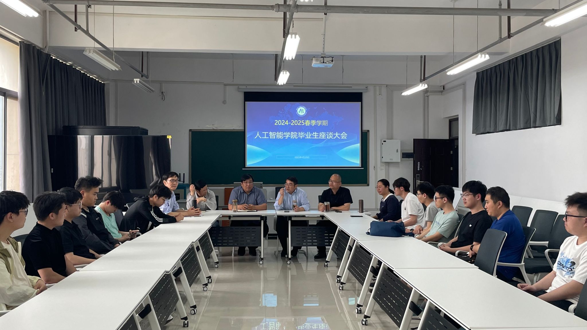 座谈会上,学院领导结合当前就业形势与专业发展特点,提出多项务实举措。杨关首先介绍了2025届毕业生整体情况,并表示学院将根据学生需求,在考研指导、就业推荐等方面提供更有针对性的支持。张西广结合典型案例指出,人工智能专业学生基础扎实、就业竞争力强,关键要主动规划职业路径,把握实习机会,尤其关注省外优质岗位资源,明确目标、坚定信心、持续发力。