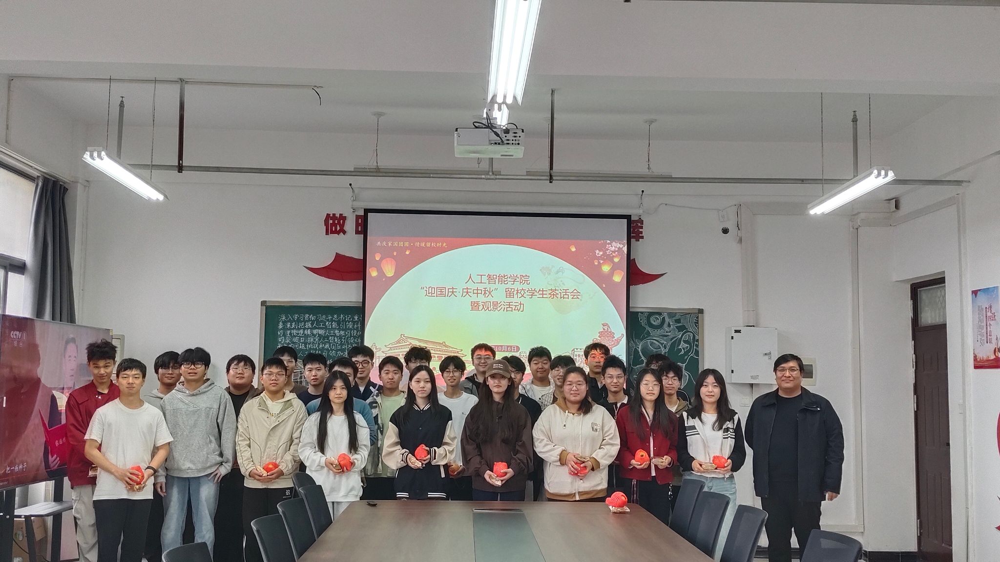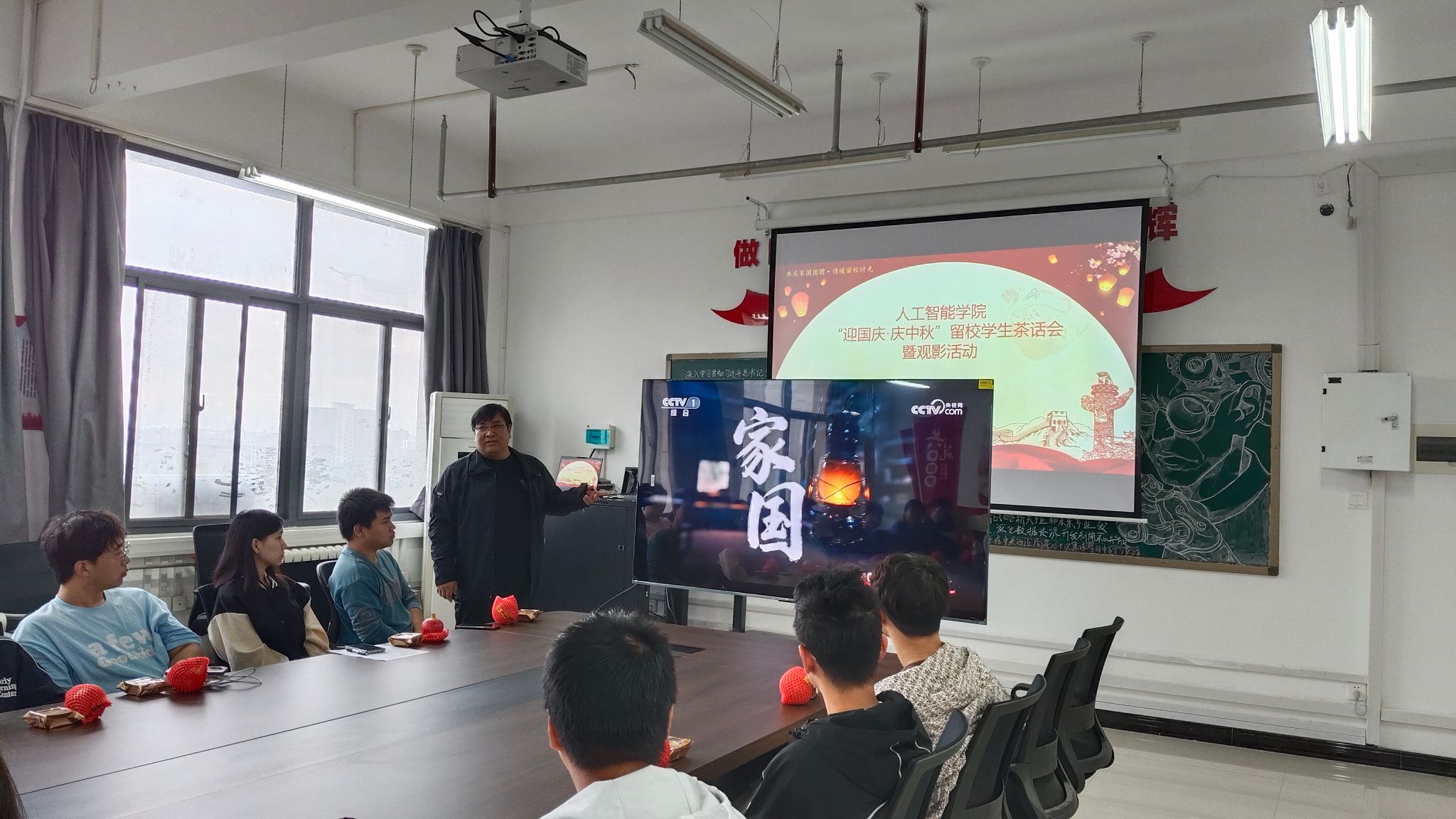 秋高气爽,丹桂飘香。在中秋、国庆双节同庆之际,为弘扬中华优秀传统文化,表达学院对假期留校学生的深切关怀,营造温馨和谐的节日氛围,10月6日上午williamhill威廉希尔在三号组团楼A915会议室隆重举办“迎国庆・庆中秋”留校学生茶话会暨观影活动,学院直属党支部副书记张志鹏与假期留校学生代表齐聚一堂,共度佳节。