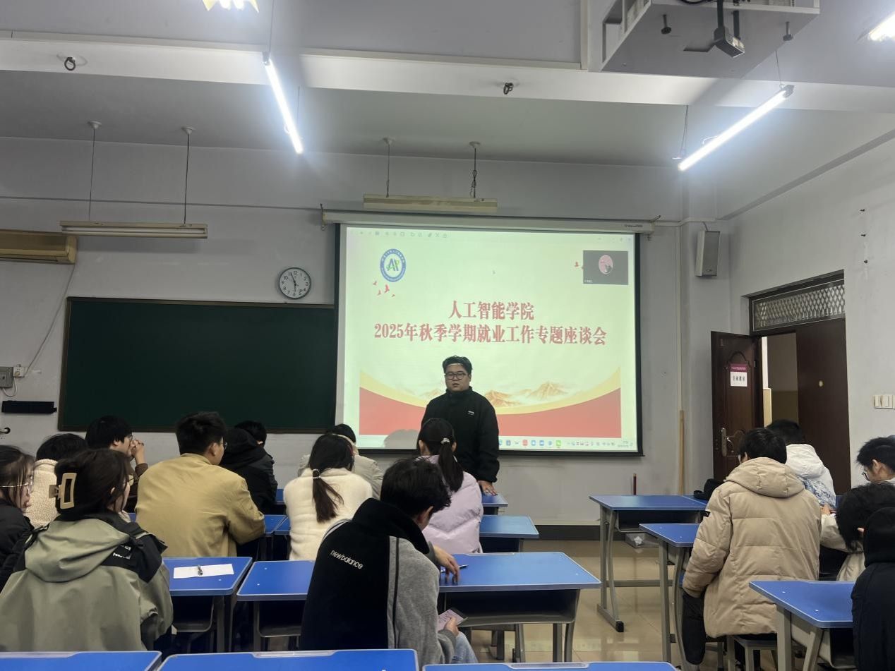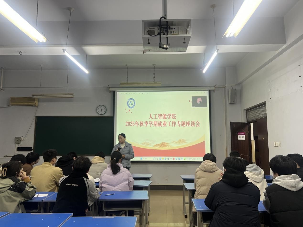 为切实做好2026届毕业生就业指导与服务工作,引导学生树立正确的就业观、择业观,提升求职竞争力,2025年11月18日,williamhill威廉希尔在龙湖校区3号组团楼A915会议室及中原校区基础实验楼623教室采取“线下+线上”相结合的形式同步召开了2026届毕业生就业专题座谈会。学院直属党支部副书记张志鹏、刘军发主任、学工办主任姜茜、数据科学与技术系主任张茜、人工智能系主任杨华、张慎武、团委书记冯丽轩等老师出席会议,2026届毕业生代表40余人参加本次专题座谈会。
