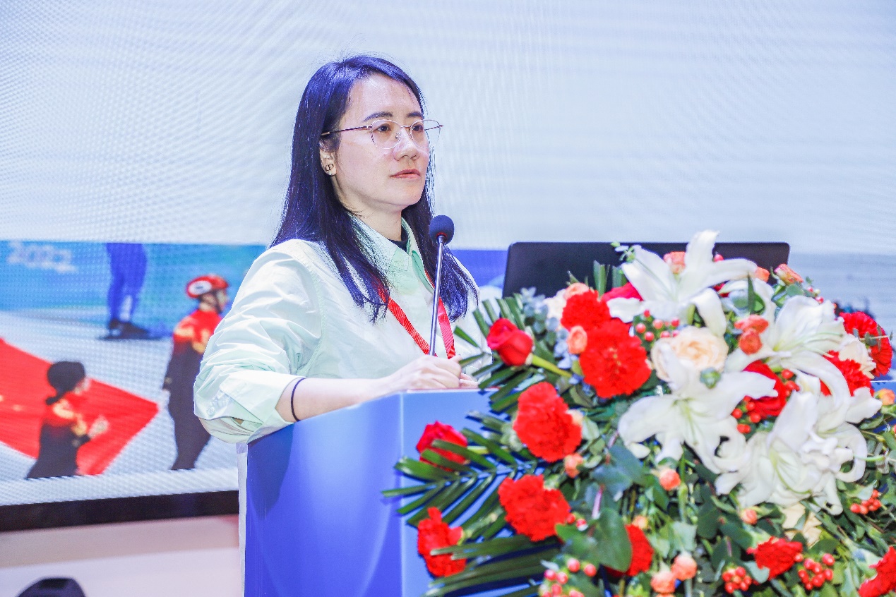 刘莉教授,博士生导师,北京服装学院服装科技研究院院长、校科协秘书长,兼任中国纺织工程学会服装服饰专业委员会副主任、中国纺织工程学会首席科学传播专家、全国纺织品标准化委员会智能纺织品工作组(SAC/TA209/WG1)副组长、体育总局备战2022年北京冬奥会“中国冰雪科学家”等。她以《冬奥比赛服“智”造记》为题,分别从“快、美、护、暖、机理”等方面讲述了冬奥中国国家队比赛服的研发关键技术。其研究在“科技冬奥”重点研发计划2019年重点专项《冬季运动与训练比赛高性能服装研发关键技术》项目的支持(科技部与体育总局双重支持)下分别为2022年冬奥会9支国家运动队(中国短道速滑队、中国速度滑冰队、中国花样滑冰队、中国自由式滑雪空中技巧队等)提供了高性能冬季运动与训练服,并在比赛中取得了优异成绩。面向2022年冬奥会中国国家队训练与比赛高性能服装研发关键技术,媒体称他们为冬奥“战衣”设计师。刘莉教授表示,其团队将会继续面向新问题,积极解决关键技术,努力把论文写在产品上,研究做在工程中,成果转化在企业里。
