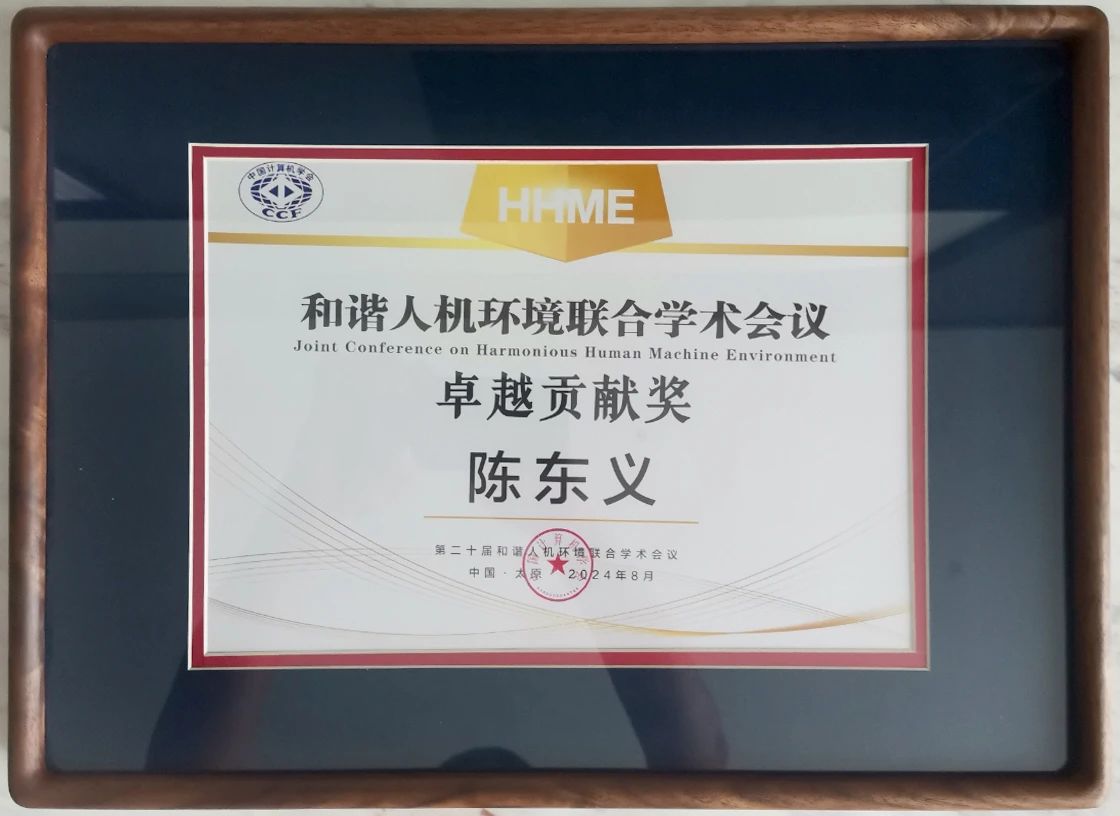 8月20日,中国计算机学会主办,中国计算机学会人机交互专委会、中国计算机学会普适计算专委会、中国指挥与控制学会智能可穿戴技术专委会协办的第二十届和谐人机环境联合学术会议(HHME)在山西太原开幕。我校williamhill威廉希尔院长陈东义教授因在推动国内可穿戴领域的发展、促进国际交流以及学术创新方面做出的突出贡献获颁“和谐人机环境联合学术会议(HHME)卓越贡献奖”。卓越贡献奖每10年颁发一次,旨在奖励在过去10年中,在推动和谐人机环境相关学术领域研究中作出卓越贡献的人物。