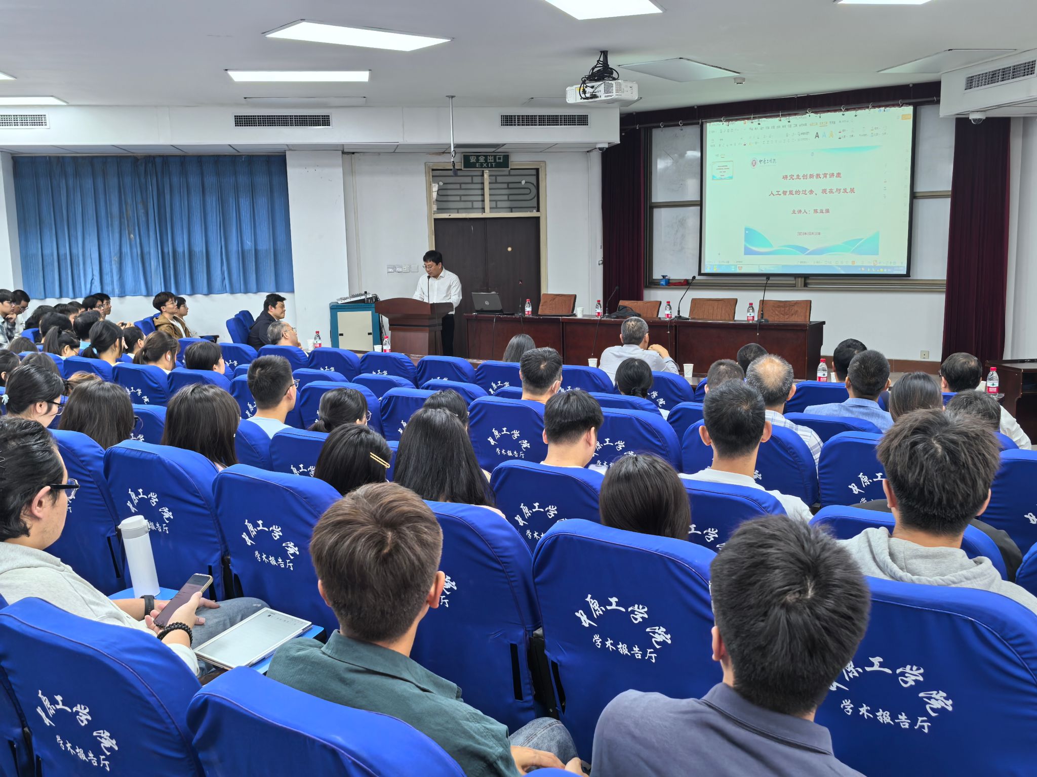 讲座伊始,瞿博阳副校长代表学校对陈益强研究员的到来表示热烈的欢迎和衷心的感谢,并简要介绍了陈研究员的学术背景和卓越成就。随后,陈益强研究员为大家带来了一场精彩纷呈的学术盛宴。他首先简要回顾了人工智能的发展历程,从最初的萌芽阶段到如今的蓬勃发展,让听众对人工智能的演变有了清晰的认识。随后,他重点介绍了深度学习在人工智能领域的研究新热潮,深入分析了其技术优势及大模型的发展历程与最新进展。