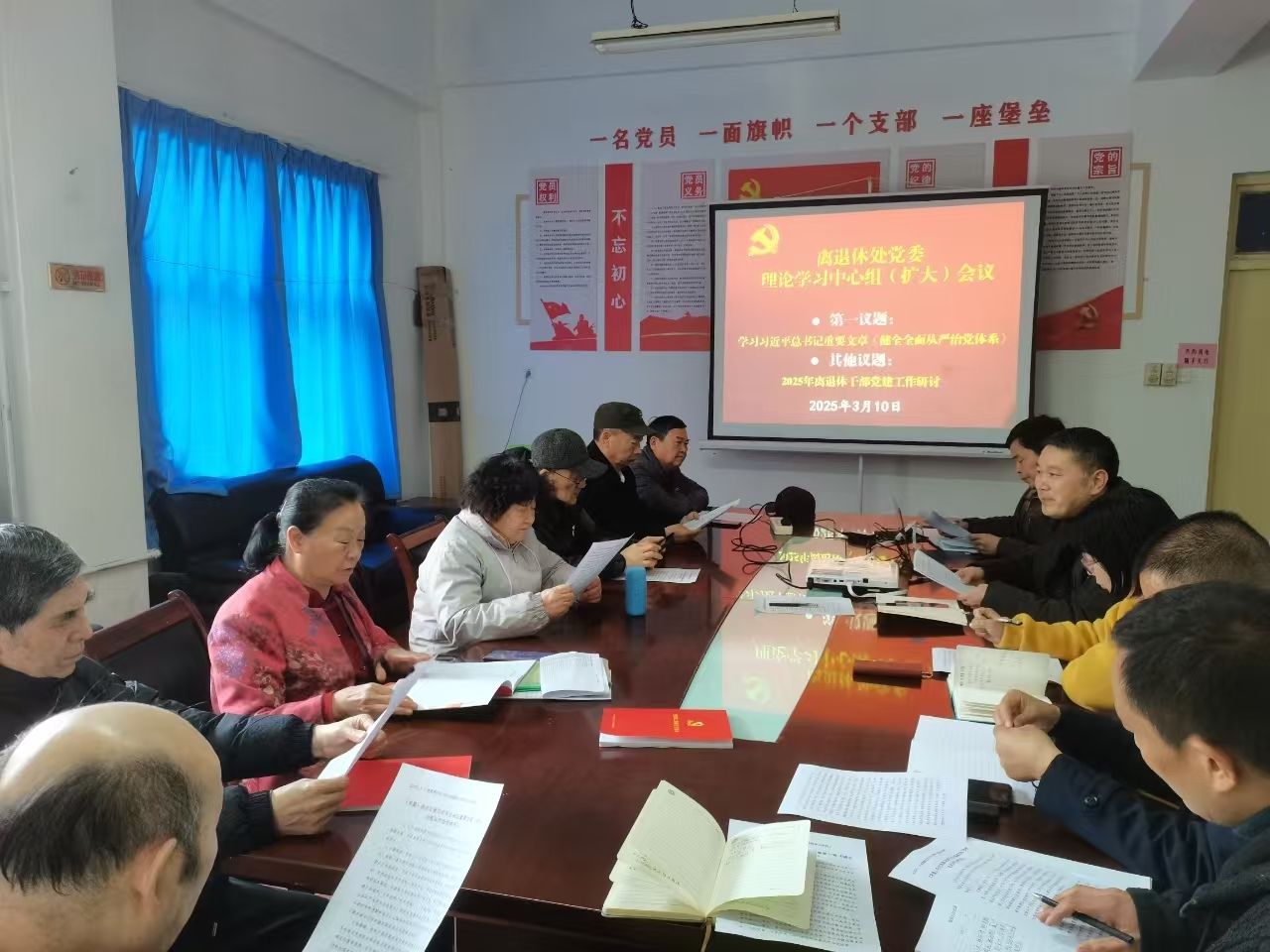 离退休处党委书记李红宇在主持报告会时,首先转达校党委、校行政对大家的新春问候和崇高敬意,随后传达学校2025年度工作大会精神并通报航空港校区建设、内涵建设等情况。作为此次线下组织活动的重要组成部分,在由离退休处党委委员和支部书记参加、副书记武林朋主持的理论学习中心组(扩大)会上,大家进行“第一议题”学习,同时对2025年干部党建、组织建设等工作进行研讨和安排。