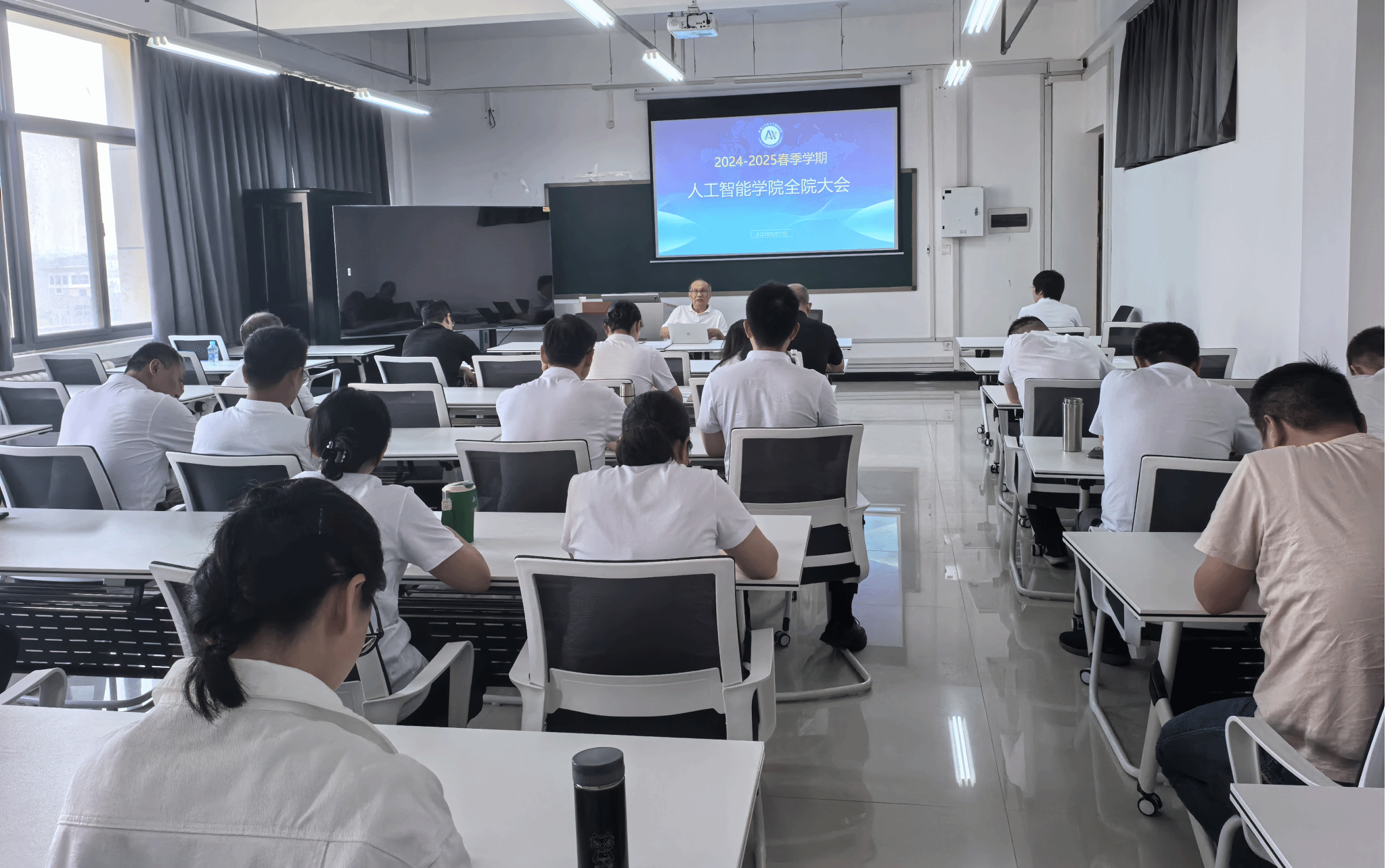 会上,老师们积极投入讨论,探索如何将人工智能技术深度赋能于教学与科研的核心环节。大家共同探讨AI在革新教学模式(如个性化学习、智能评测、互动课堂)和提升科研效能中的多样化应用方案,旨在借助AI的强大能力,显著提升教学质量、优化学习体验、加速科研进程并催生创新成果。